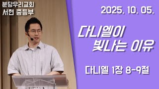 | 979 | 다니엘이 빛나는 이유 | 다니엘 1장 8~9절 | 허현 목사 | 2025-10-05 |