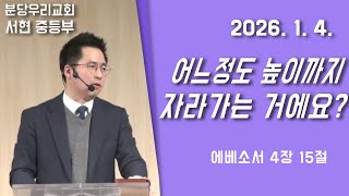 | 992 | 어느정도 높이까지 자라가는 거에요? | 에베소서 4장 15절 | 허현 목사 | 2026-01-04 |