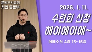 | 993 | 수련회 신청 해이에이에~ | 에베소서 4장 15~16절 | 허현 목사 | 2026-01-11 |